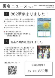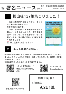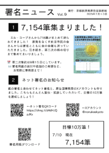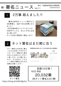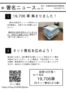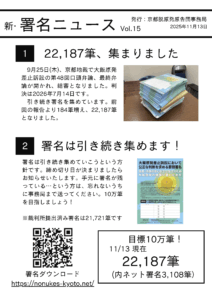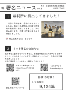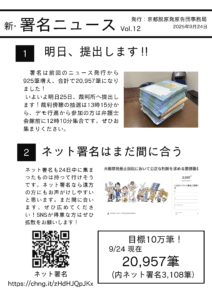 9月25日、第一次集約(7月22日提出)後に集まった署名12,597筆を京都地方裁判所に提出しました。第一次集約・提出分と合わせて21,721筆になりました。