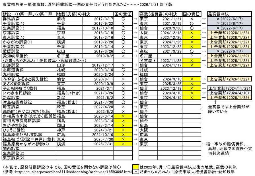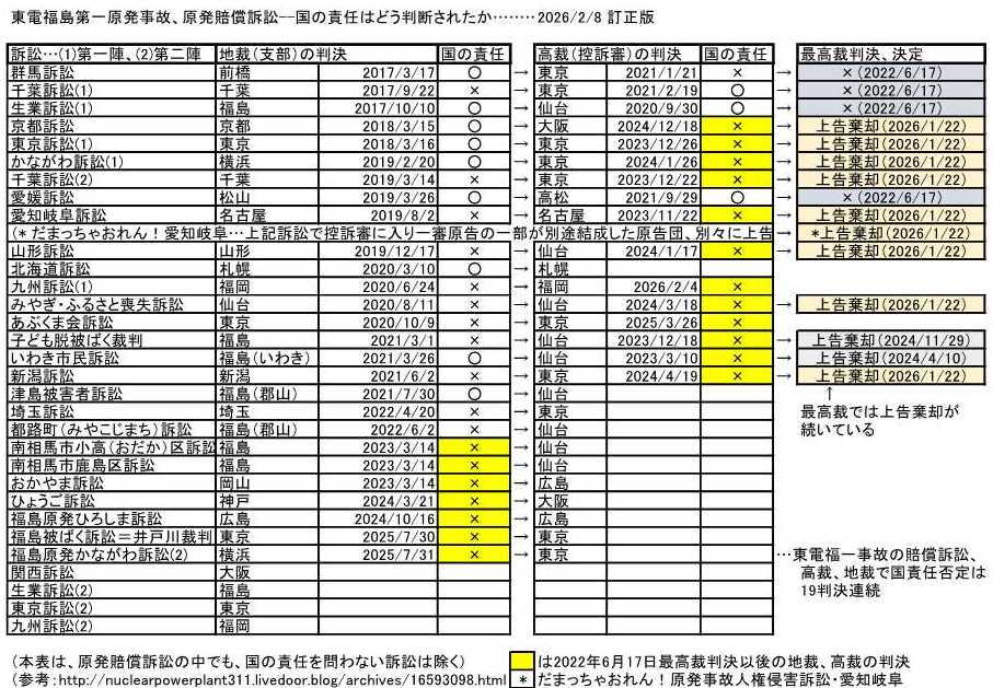 原発賠償訴訟で最高裁にかかっていた9件の訴訟について、2026/1/22に上告棄却 !!!(>_<)!!!